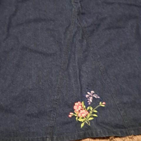 Kaunis valkoinen midipituinen valkoinen farkkuhame. Napitettu koko matkan edestä. Joustavaa farkkukangasta. Kiva vuoden ympäri, ja midipituuden ansiosta talvellakin ok käyttää/ei roiski kaduilta helposti helmaan :).
