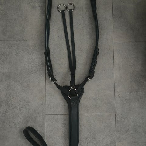 Wahlstenin ruskea full-kokoinen täysnahkainen rintaremmi-martingaali (teetetty Wahlstenilla). Messingin väriset soljet. Siisti käytetty kunto.