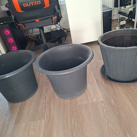 2 kpl isoja pyörällisia kukkaruukkuja.