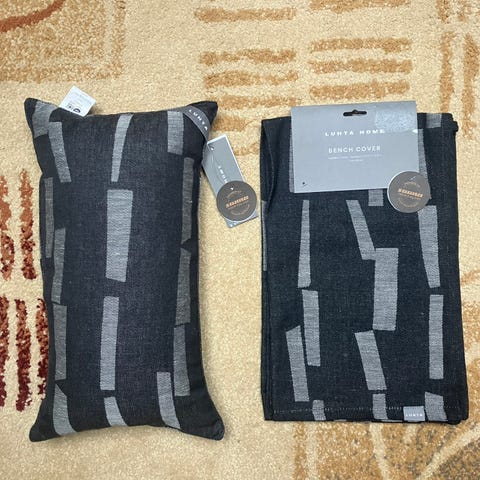 Saunan laudeliina setti. Kuvassa näkyy Pituus. Materiaalitietoja ei ollut muta uskon sen olevan pellavasekoitusta
