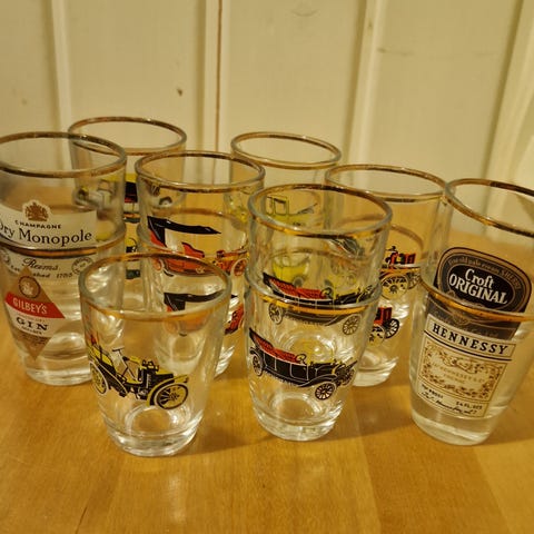 Kaksi kappaletta vanhoja snapsilaseja ja lasien nahkakoristeita kuvien mukaisessa kunnossa. Paino noin 51g ja korkeus 5,5cm.