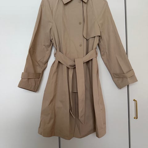 Tyylikäs Armani Jeans trenssitakki, pari kertaa käytetty, beige, polyesteriä, puolivuori, kaksi sivutaskua, vyö, Italian koko 42, Suomen koko reilu 36/38. Mitat: kainalo/kainalo 49 cm, niska/helma 82 cm, hiha 62 cm.