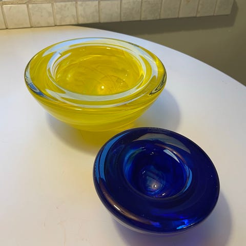 Näyttävä Contrast-kulho 350 mm. on Anna Ehrnerin suunnittelema ja valmistettu Kosta Bodalla lasista. Väri on kauniin syvän sininen. Klassikko, joka sopii erinomaisesti sekä tarjoiluun että koristeluun.