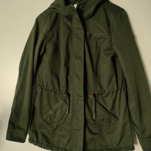 Onlyn beige syksy/kevät takki. Koko on S. Olen käyttänyt jonkun verran, mutta ei enää ole käyttöä, joten myyn. Takin saa vetoketjulla kiinni mutta ei ihan ylös asti sillä siihen on ommeltu, joten otathan hinnassa huomioon että takista on leikattu huppu irti ja sitä on jouduttu ompelemaan.😊