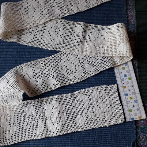Oikeasti todella nyplättyä pitsiä 4x1.5m + 1x2.5m leveys 6cm
