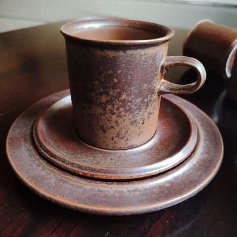 Myyntiin Arabian Ruska-sarjaan kuuluvat kahvikupit, tassit ja pullalautaset.