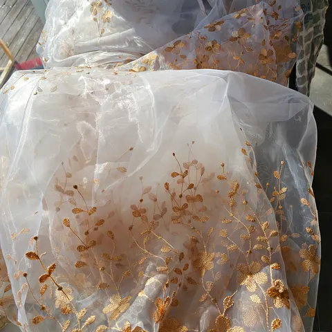Myydään fuksianpunaista organzaa yhteensä 10,2 metriä. Käytetty kattauksen koristeluna häissä ja sitä varten leikattu kaitaliinojen tapaan.