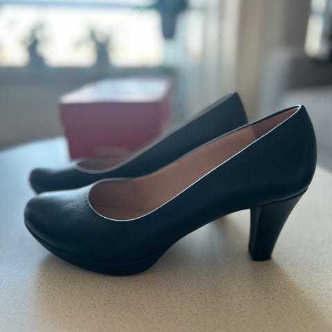 Espanjalaiset Wonders-korkokengät, koko 40, mustaa nahkaa. Korko 7cm. Hyvässä kunnossa, pari kertaa ollut jalassa, mutta korko itselle liikaa.