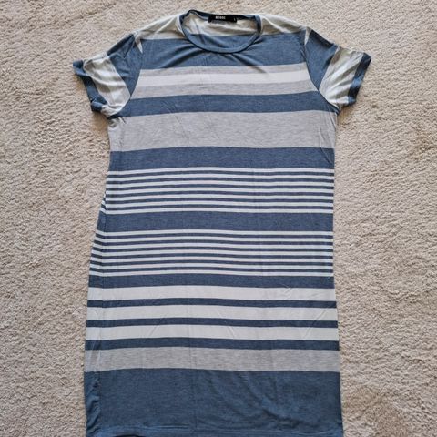 Kokomerkintä on L, ja kuvassa mekko on päällä M/L-kokoisella 164cm -henkilöllä. Kainalosta kainaloon mitta on 65cm. Olkasaumasta helmaan 92cm.