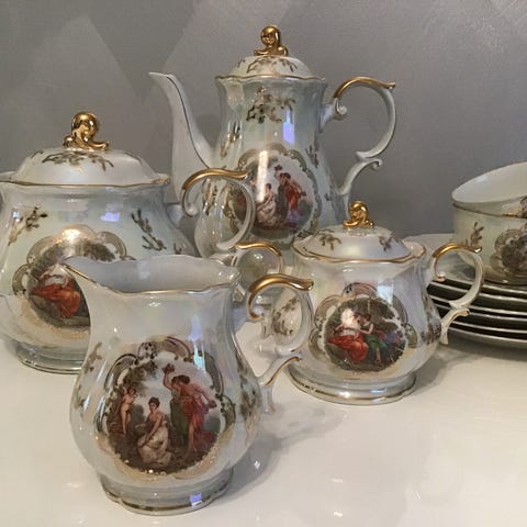 Myydään Madonna-teeastiasto 6 henkilölle, 27 osaa, valmistettu Itä-Saksassa, tehdaspakkauksessa, uudenveroisessa kunnossa.