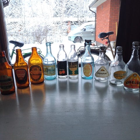 Chymos Oy puristelasi likööripullo 1950 - 1970-luvulta. Pullon alaosassa teksti Chymos.