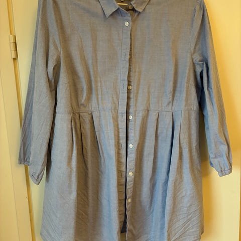 Kaunis kesäinen tunikka jossa hopealanka kudottu sisään. Kapea vyö tuo kauniin vauvamahan esille. Puhdas ja ehjä