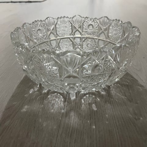 1 pieni iskemä jalan alapinnalla (merkitty kuviin), joka juuri ja juuri erottuu maljan seistessä pöydällä. Muutoin vain hyvin vähäistä käytön jälkeä.