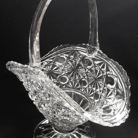 Upea ja näyttävä jalallinen hedelmäkulho vanhan, värillisen lasin ystäville! Eryka Trzewik-Drostin 1960-luvulla suunnittelema malja on peräisin puolalaisesta Zabkowicen lasitehtaasta. Malja on valmistettu puristetusta lasista, joka on kauttaaltaan värjätty tumman meripihkan väriseksi. Koko pinta on koristeltu kohokuvioiduilla pienillä rombeilla ja napeilla.