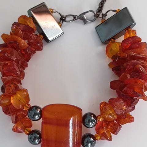 Meripihka/hematiitti/mustaväriset metalliosat.