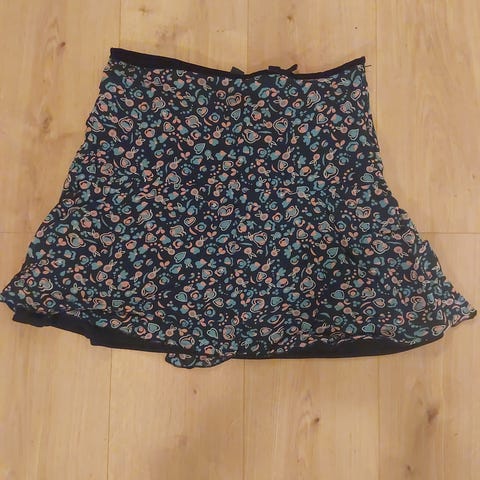 Kaunis pikkukukallinen hame puuvillaviskoosia, mukava päällä eikä rypisty helposti. Koko 38, vetoketju sivusaumassa.