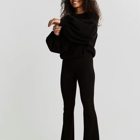 Leveälahkeiset viskoosihousut, joissa sivussa veroketju