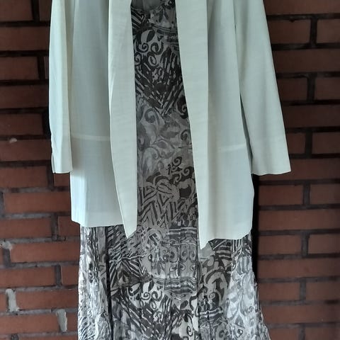 Lyhyt A-mallinen mekko kuviopintaista puuvillaa reikänauhakirjailulla. Osittainen vuori. Kokolapussa merkintä XL, mutta on todella reilu, vastaa kokoa 50-52!