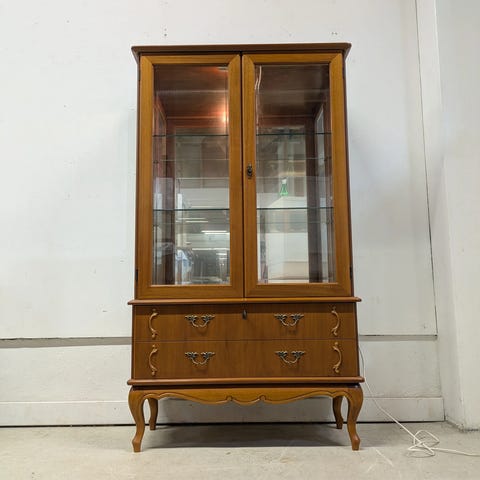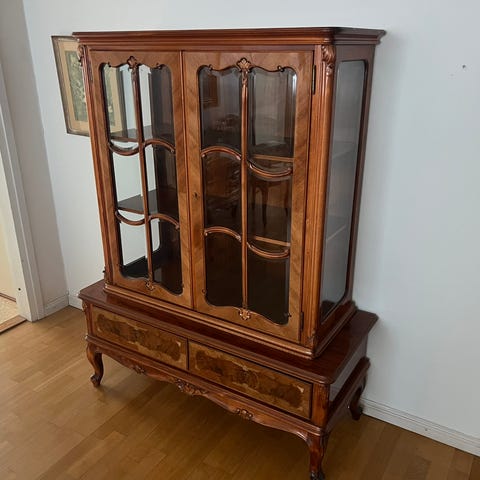 Tyylikäs ja ainutlaatuinen Rokokoo vitriini joka taatusti herättää vieraiden katseita. Vitriini on ostettu 90-luvulla ja ovh oli 10 000 markkaa eli noin 1800€. Vitriinissä on toimiva valaistus sekä lukko. Hinnassa on otettu huomioon vitriinin kunto! Vitriinin lasitasossa on särö, joka voi mennä pahemmaksi jos siihen laittaa liikaa painoa. Lisäksi vitriinissä on pieniä kolhuja jotka ovat tulleet kuljetuksen ohella.