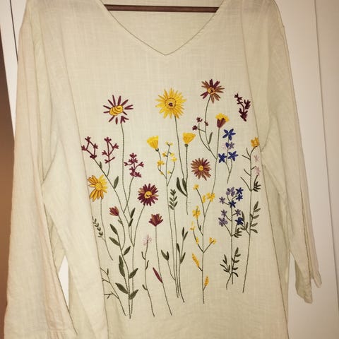 Kangas kuin silkkiä. Kainalomitta n. 62 cm. Olkapää helma n. 80 cm.