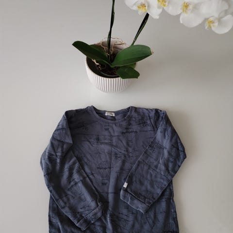 Newbien valkoisella pohjalla sinisen sävyiset kuumailmapallot printattu yöpuku. Kevyt t-paita ja shortsit. Kokomerkintä 110/116. Uutena ostetut, yhden lapsen pitämät. Siisti kunto. Arka pohjaväri, mutta ei hyppinyt silmille tahroja. Värit ei yhtä kirkkaan valkoiset enää kuin mitä uutena.