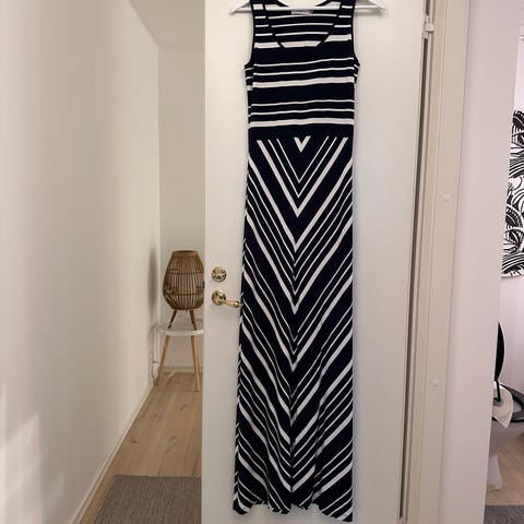 Kelta-valkoinen puuvillainen mekko. Todella vähän käytetty ja siisti