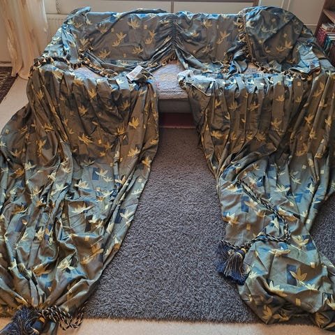Pony By Eero Aarnio verhot, Eurokankaassa teetetyt sivuverhot 2 kpl, myös pitkät sivut ommeltu. Kangas 100 % puuvillaa (paksu ja napakka kangas). Vihreä - valkoiset. Käyttämättömäksi jääneet.