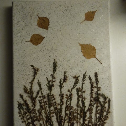 Käsinmaalattu maisemataulu kankaalle, jossa on vihreä värimaailma. Taulussa on kuvattuna luonnonmaisema, jossa on kukkia, mehiläisiä ja pieni puinen rakennus. Sopii hyvin sisustuselementiksi kodin eri tiloihin. Postitus mahdollista.