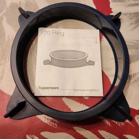 Uusi Tupperware Ultra Pro grillivati (purettu pussiata kuvausta varten). Sopii 2,0 ja 3,5 l soikeiden vuokien päälle ja voi käyttää myös yksinään. Myytävä vati on avaamattomassa pussissa (kuva 2).