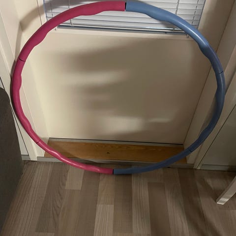 Myydään vähällä käytöllä ollut koottava hula vanne. Paino 1,2 kg, läpimitta 100 cm.