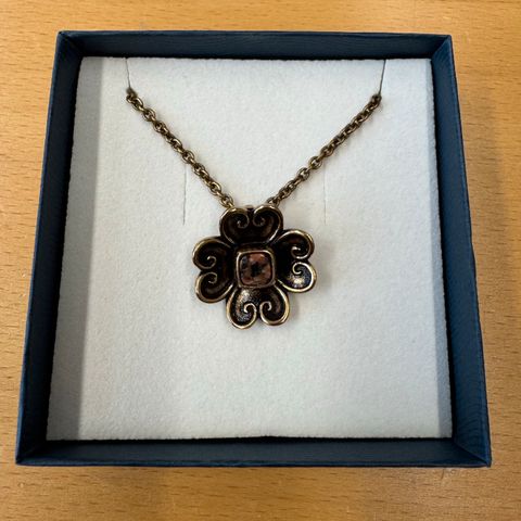 Kalevala Korun hopeinen Puna-apila riipus, kivinä granaatit: Riipuksen koko n. 1.9 cm x 1.9 cm, leimat kk, 925, kruunu. Ketjun pituus 42 cm, leimat kk, 925.