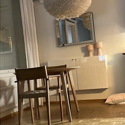 Pieni peili kauniissa leveässä kehyksessä. Peilin tilalle voi helposti vaihtaa valokuvan. Peilin voi ripustaa pystyasentoon tai vaakaan. Koko 25,5x 20,5 cm.