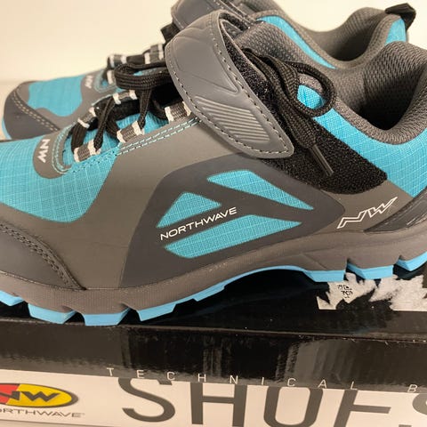 Kuin uudet, käyttämättömäksi jääneet newline pyöräilykengät vielä alkuperäisessä paketissaan.