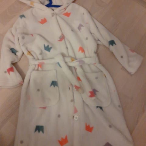Muutaman kerran käytetty aamu/kylpytakki koko 122/128. Materiaali pehmeää fleeceä.