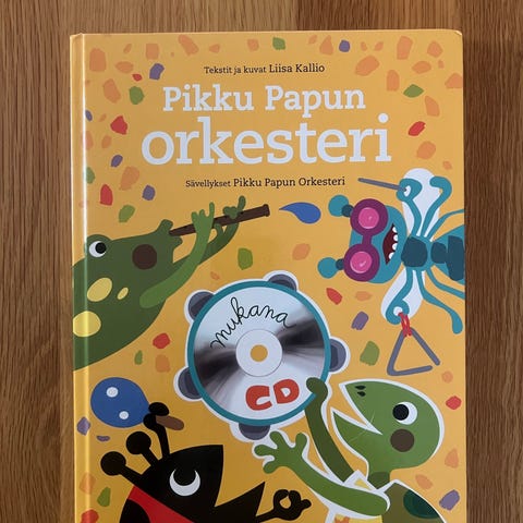 Meillä paljon rakastettu Pikku Papun laulut, cd puuttuu. Kirja on ehjä, mutta kansissa on käytönjälkeä.