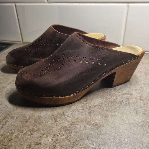 Hyväkuntoiset, lähes käyttämättömät puukengät. Koko 39.