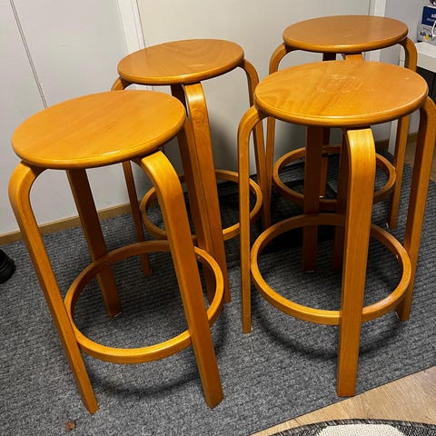 Myydään hyväkuntoiset IKEA BERGMUND- baarituolit. Istumakorkeus on 62cm. Päällinen Hallarp beige ja runko tammen värinen.