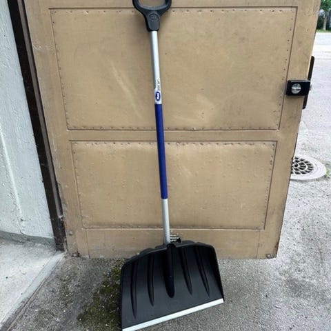Teleskooppivarrella katolta lumet alas. Jäänyt tarpeettomaksi ja odottaa lumia sekä seuraavaa käyttäjää.