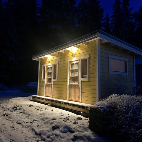 Ja saunasta menisi hyvin kiuas ja piippu puuttuu ja istuimet.