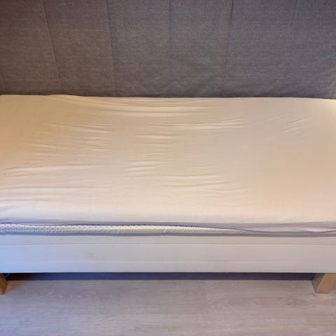 1,5 years old bed still in good condition. Including bed base, thick mattress and soft top mattress (+ bed sheet and pillow for free if needed).