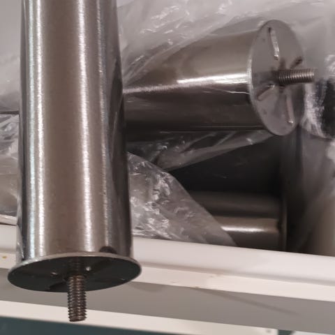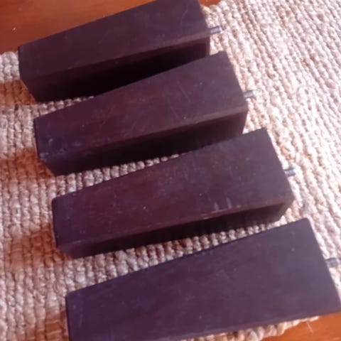 Myydään ylimääräiset uudet sängyn-/sohvanjalat 4 kpl, väri musta, korkeus 12 cm, hieman viisto malli, pultti M8 mm, mukana huopapehmusteet.