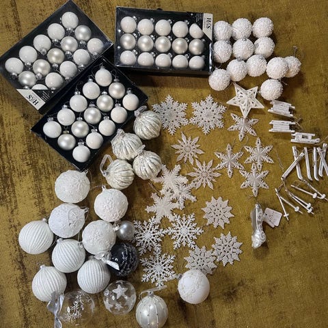 Huge package of Christmas toys, lights and decors. Enough for a 210cm tree.