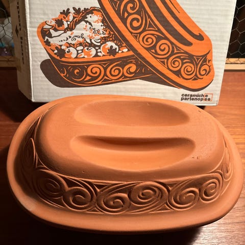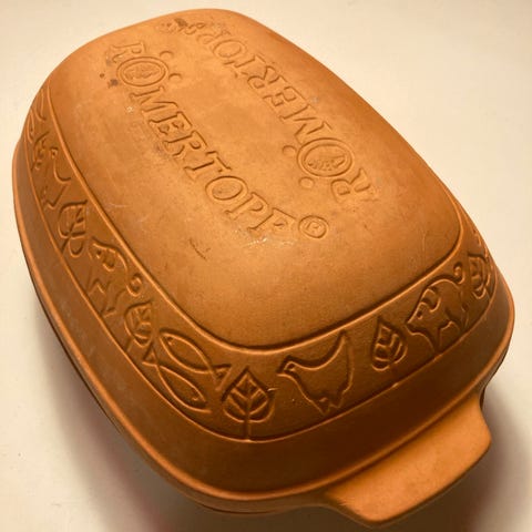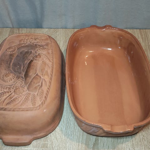 Römertopfin savipata omenille, halkaisija 13,5 cm ja korkeus 7 cm plus kansi.