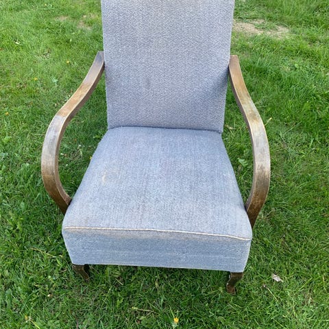 Nojatuoli, k-tuoli, verhoiltu, entisöity, kunnostettu, Rahi, jalkatuki, lahja, lahjaksi, mökille, olohuoneeseen, verhoiltu, uusi, kunnostettu