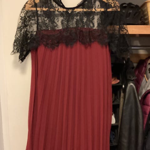 Pikkumusta avonaisella selällä ja pitsikoristeella. Kokolapussa lukee M mutta vastaa suomen S kokoa. Kangas myös joustaa hyvin. Takana vetoketju