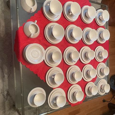 Valkoinen Harlekin astiasto. Ei ole rippilahjalle käyttöä.
