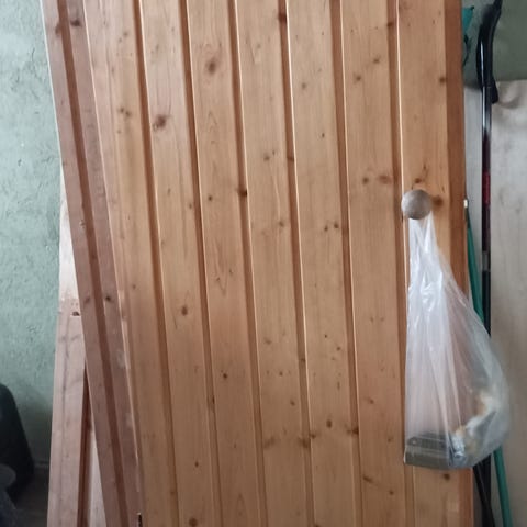 Kaksi ladon ovea. Myydään yhdessä pakettina. Näitä on säilytetty lämpimässä autotalissa. Yhdessä ovessa pieni halkeama, katso kuva 5.