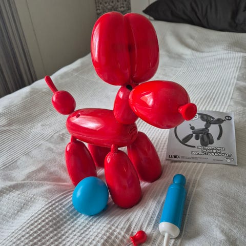 Punainen ilmapallokoira. Tarvikkeet ja ohjeet mukana.