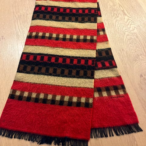 Myyn kuvanmukaisen ruudullisen kaulahuivin. Pituus noin 180 cm ja leveys noin 45cm. On vielä käyttökelpoinen. Se on tehty ryppyiseksi. Hinnan lisäksi postikulut tai nouto Ruoveden keskustasta.