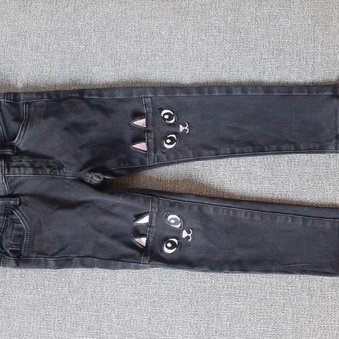 Tyttöjen retro farkut 92. Vanhat, mutta hyvässä kunnossa eikä haise vanhalle. Materiaali 100% puuvilla. Angel - printti hyvässä kunnossa ja timantit pysynyt suurilta osin paikallaan. Ehjät. Valmistajan lappu repeytynyt, saattaa olla H&M alunperin?